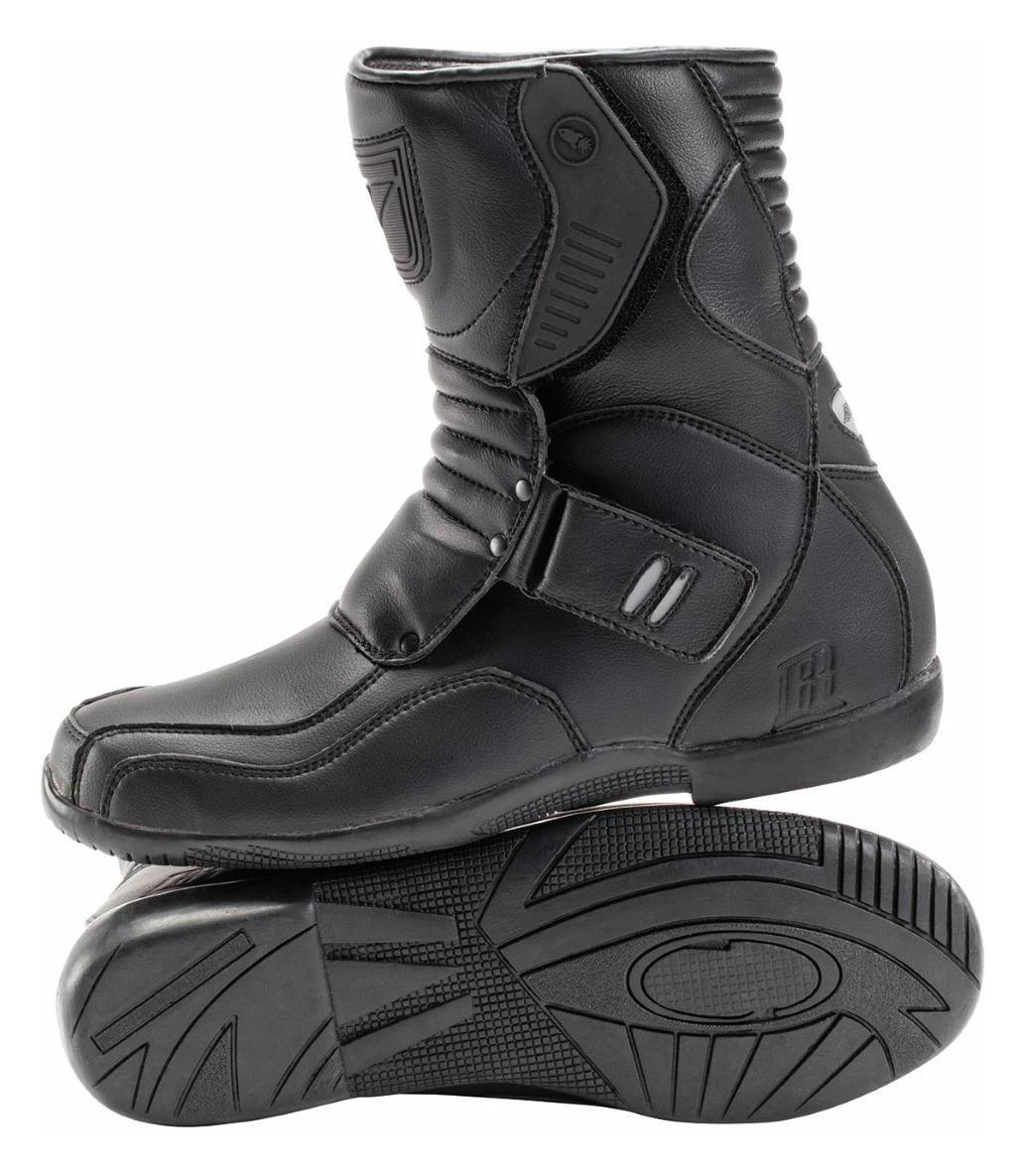 The Joe Rocket Mercury Boots are a mid-height heavy duty leather boot with an adjustable, large entry system, reinforced gear shift area and an anti-slip sole.