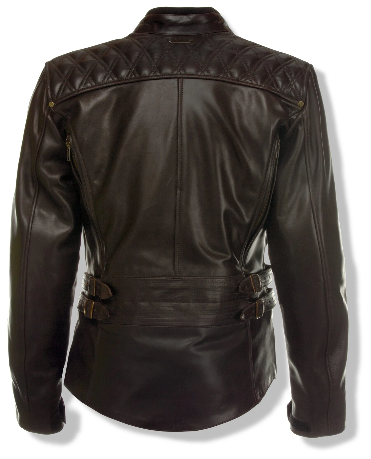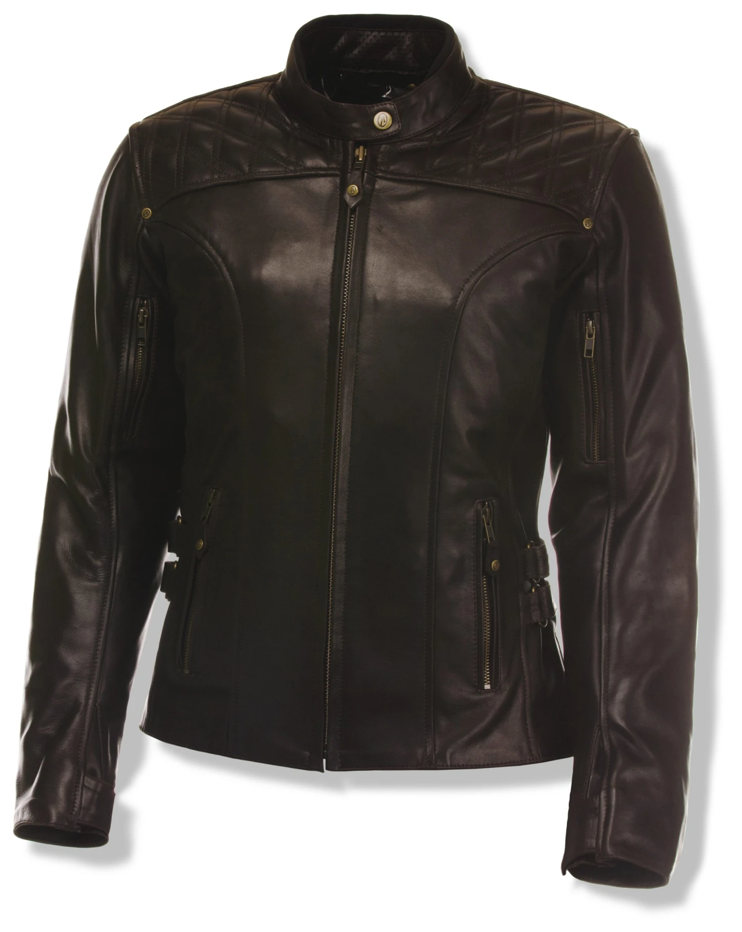 I’m gonna show you, baby, that a woman can be tough! Like the Little Girl Blue herself, the Olympia Janis Leather Jacket is tenacious and tough-as-nails with a strong-willed personality and an endearing streak of girlish naiveté. Its inexhaustible rock and roll spirit shines through in the way of retro-styled diamond-quilted paneling on the front and rear yoke, brass finish YKK zippers and hardware and double-strap waist cinches with hip gussets to maintain a stylish, feminine profile.