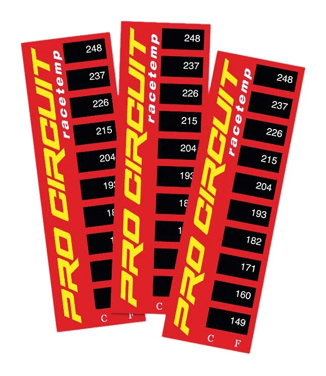 Overheating is the main reason your bike loses power and performance. Today’s high performance race bikes are at the cutting edge of development and continue to push the limits of existing technology. Pro Circuit Thermostrips come in a package of three so you can monitor the running temperature on your motor, shock or radiators to make sure you’re not losing performance due to overheating.